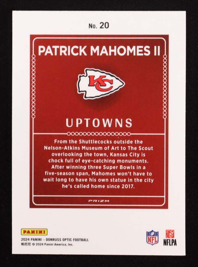 Patrick Mahomes II 2024 Donruss Optic Uptowns #20