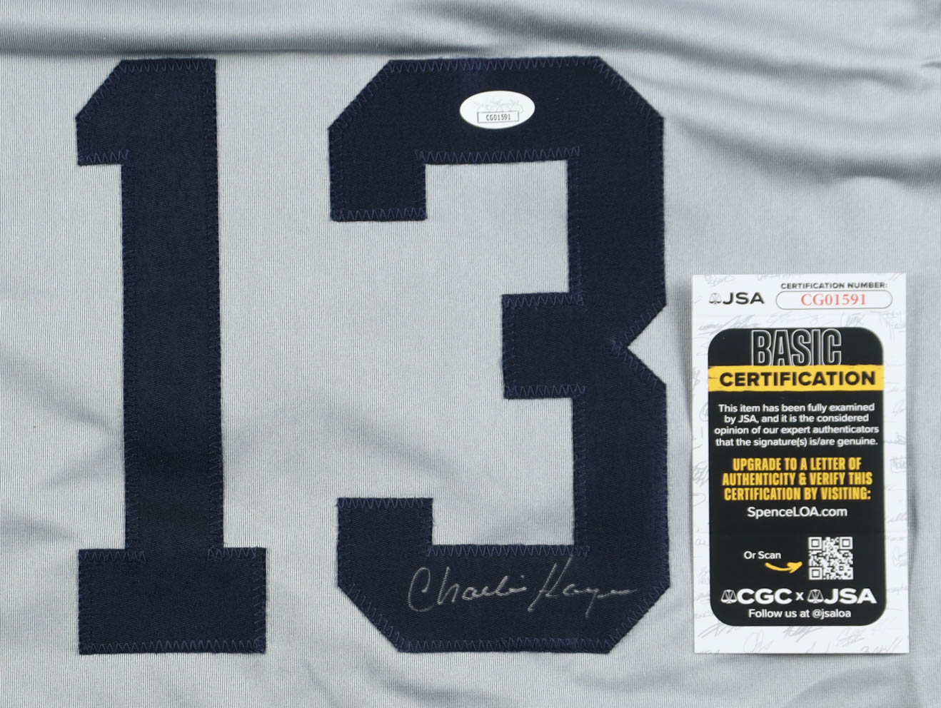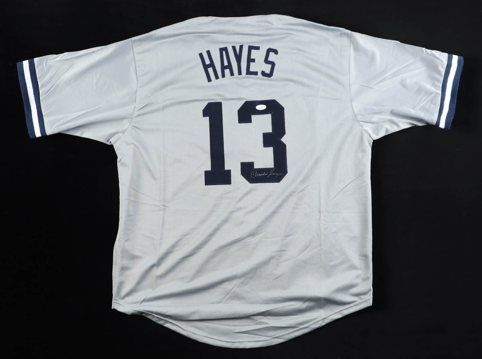Custom jersey with everything sewn on, size XL. Hand-signed by Charlie Hayes.