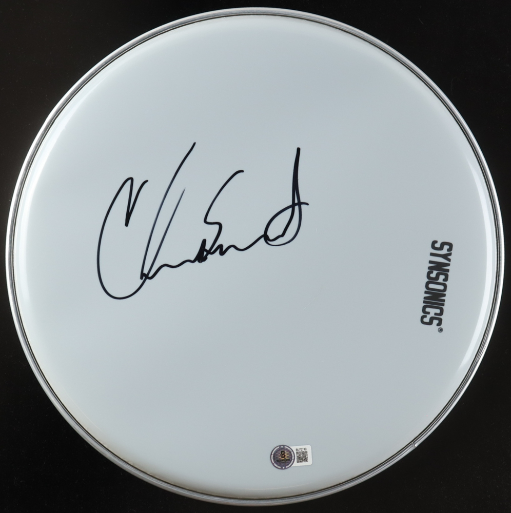 Drumhead measures approximately 12.5" in diameter and has been hand-signed by Chad Smith.