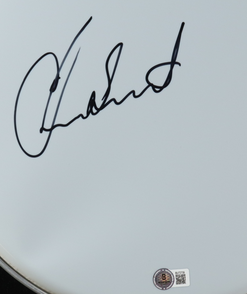 Drumhead measures approximately 12.5" in diameter and has been hand-signed by Chad Smith.