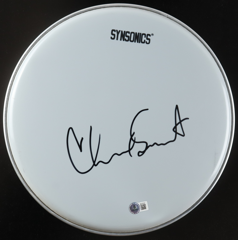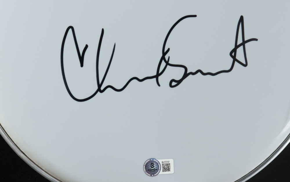 Drumhead measures approximately 12.5" in diameter and has been hand-signed by Chad Smith.