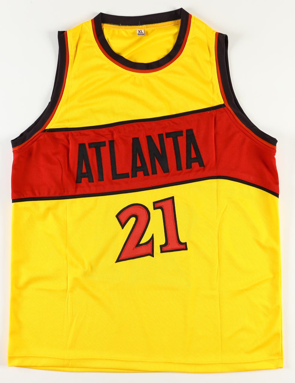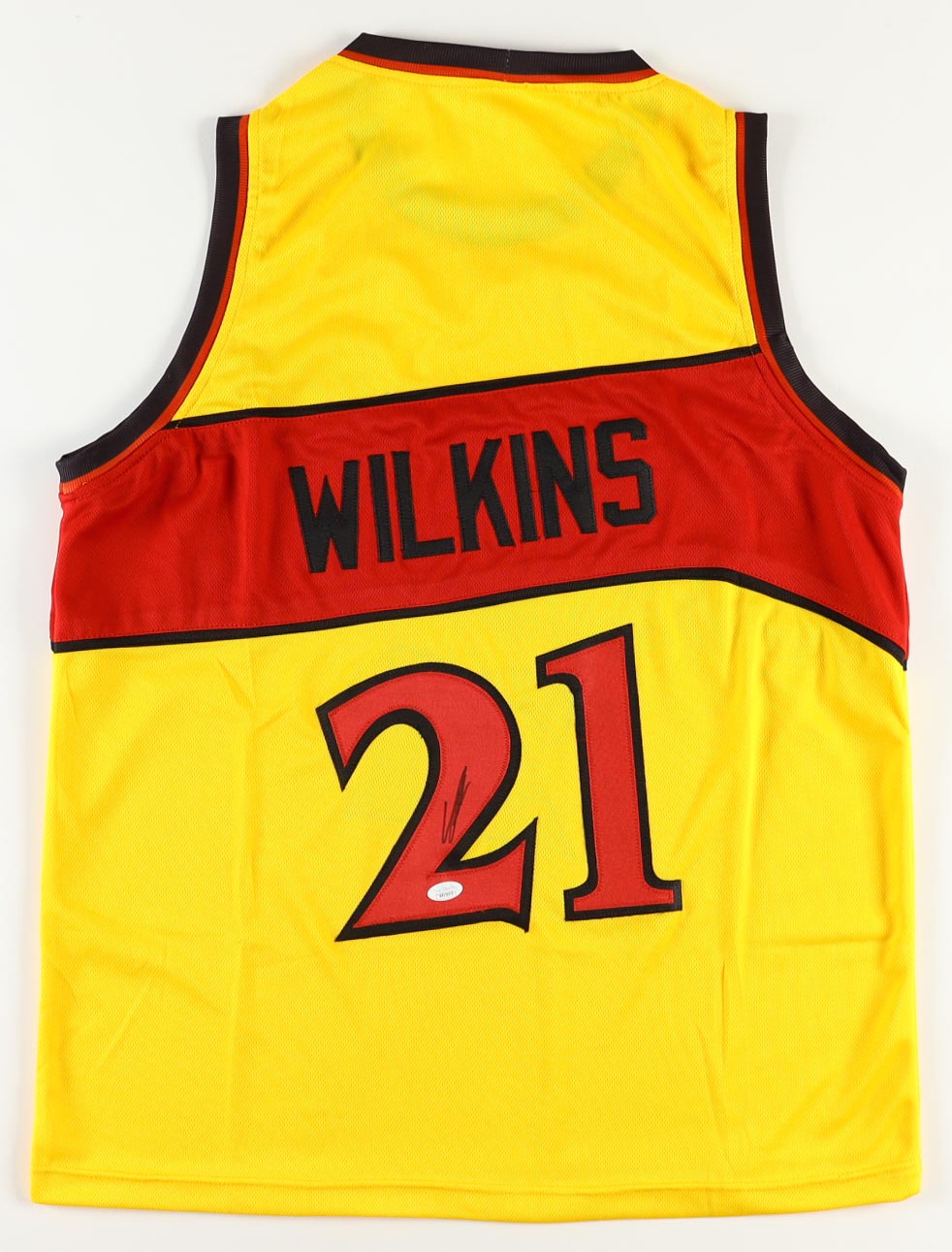 Custom jersey with everything sewn on, size XL. Hand-signed by Dominique Wilkins (Atlanta Hawks, HOF).