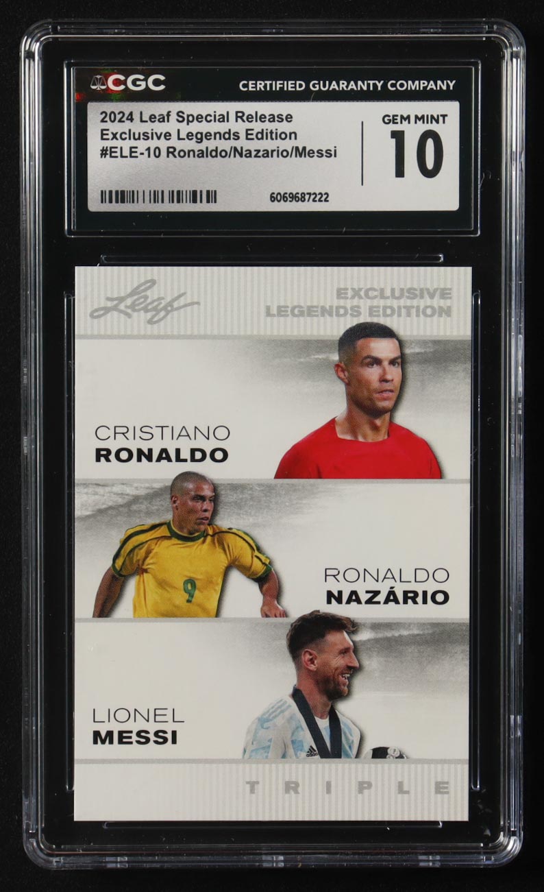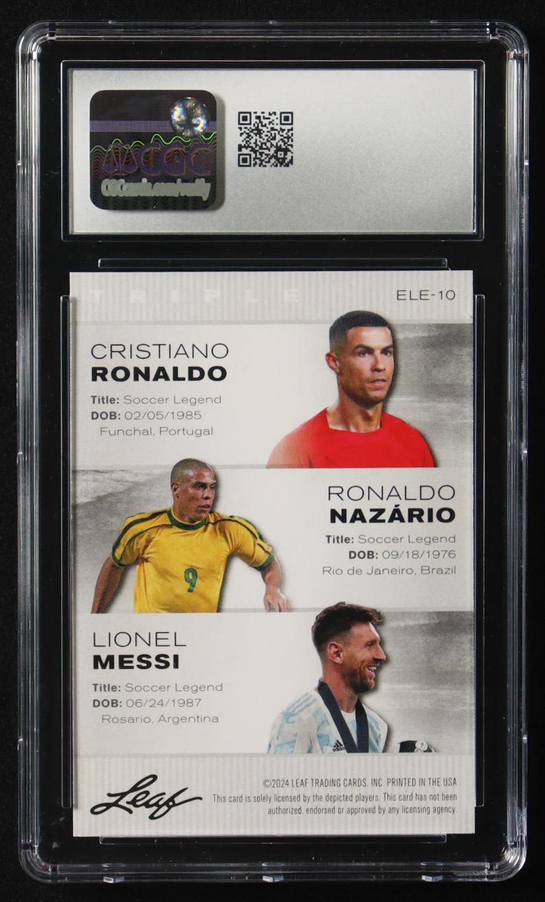Cristiano Ronaldo / Ronaldo Nazario / Lionel Messi 2024 Leaf Special Release Exclusive Legends Edition #ELE10 (CGC 10)