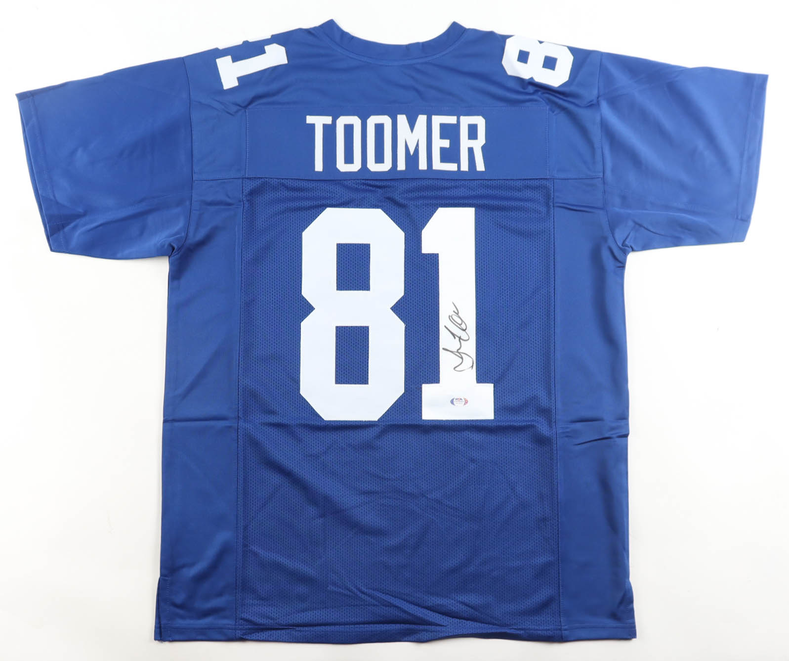 Custom jersey with everything sewn on, size XL. Hand-signed by Amani Toomer.