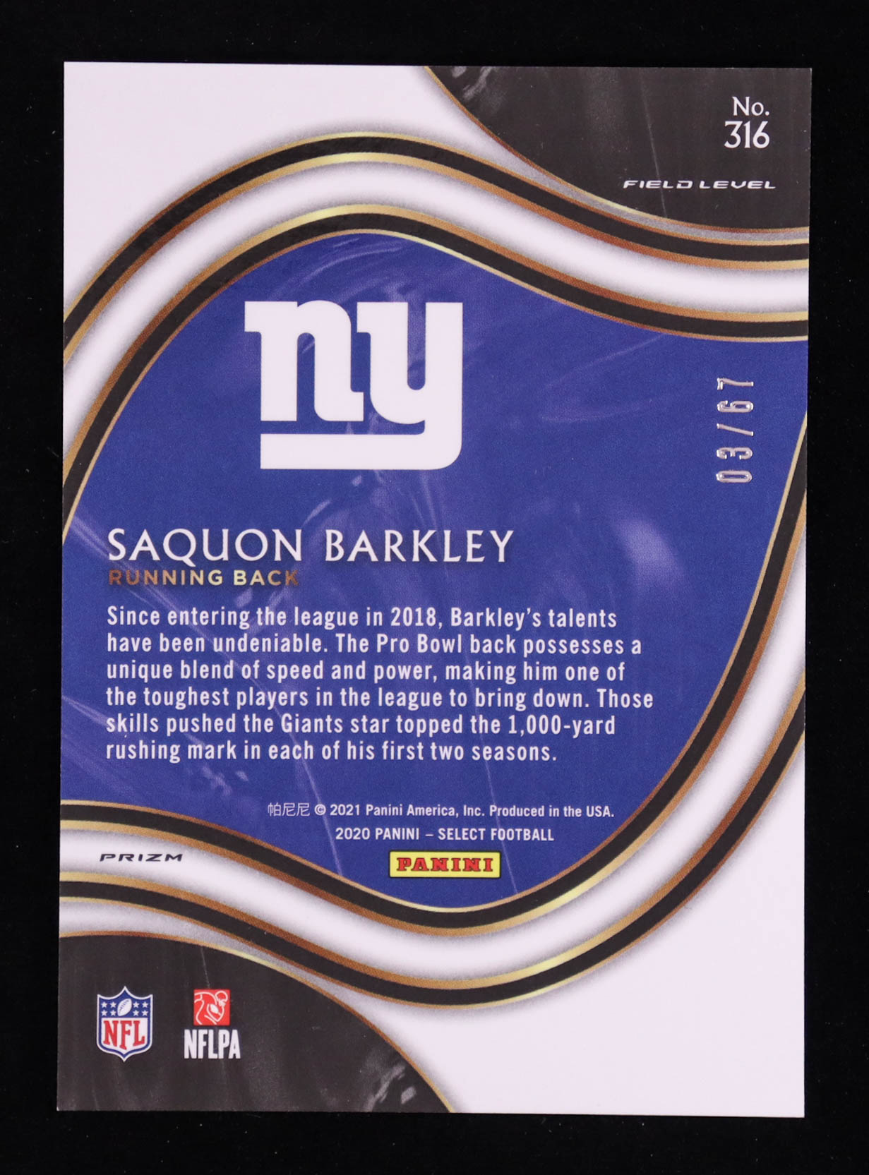 Saquon Barkley 2020 Select Prizm Dragon Scale #316 #3/67
