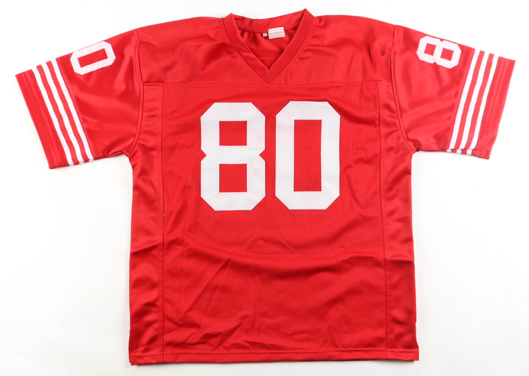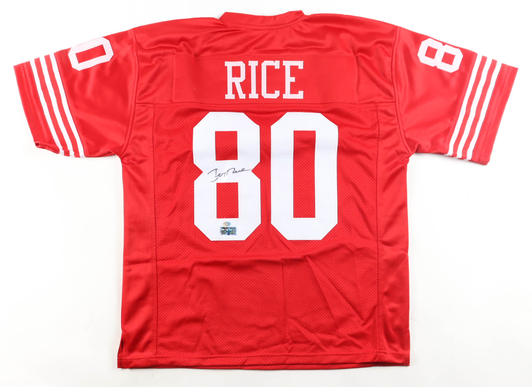 Custom jersey with everything sewn on, size XL. Hand-signed by Jerry Rice (HOF).