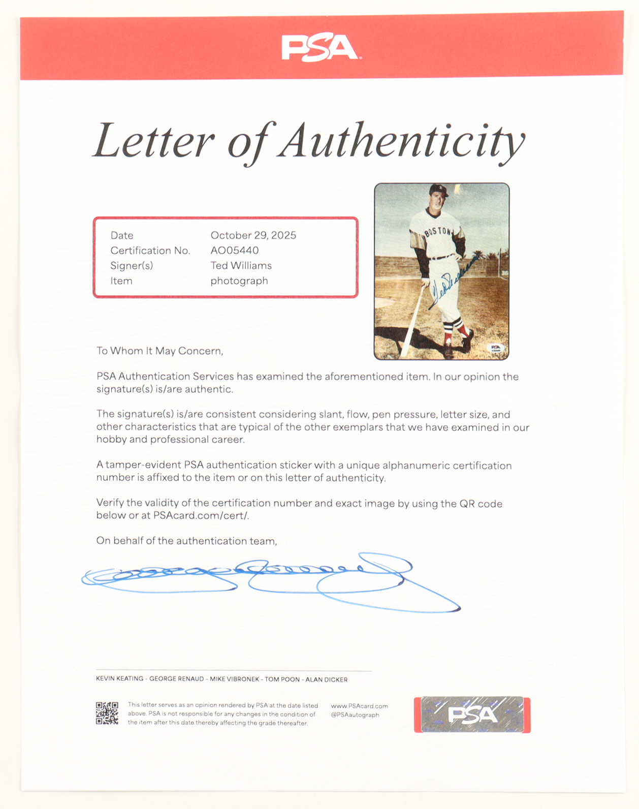 The autograph(s) includes an official PSA/DNA hologram and matching LOA for authenticity purposes.