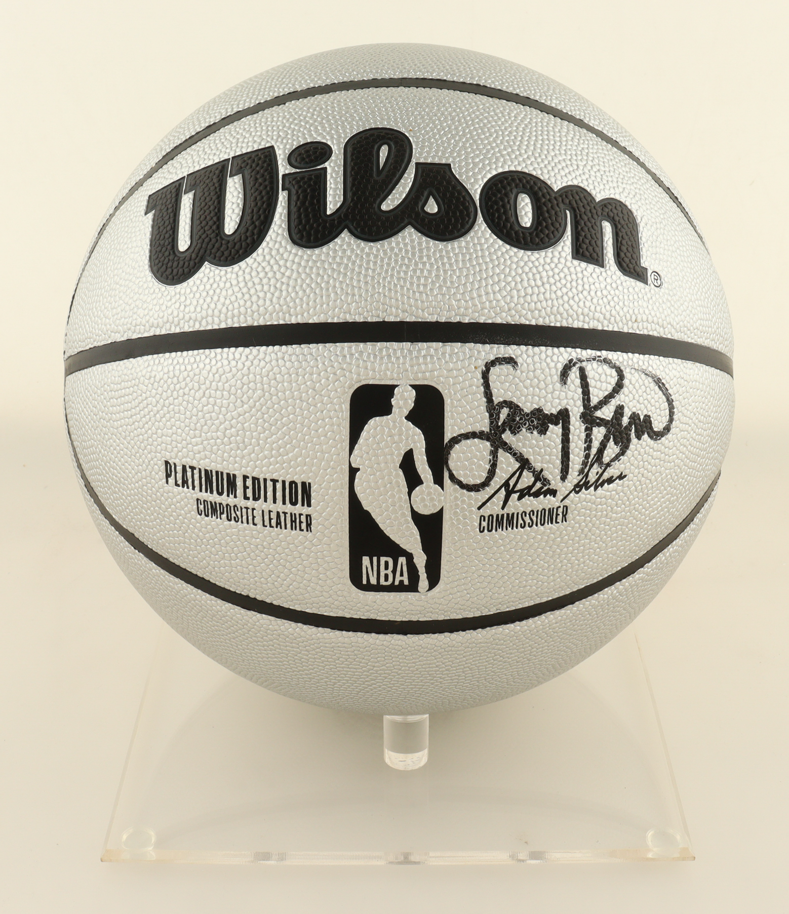 Wilson Platinum Edition basketball With Display Stand has been hand-signed by Larry Bird (Boston Celtics, HOF).