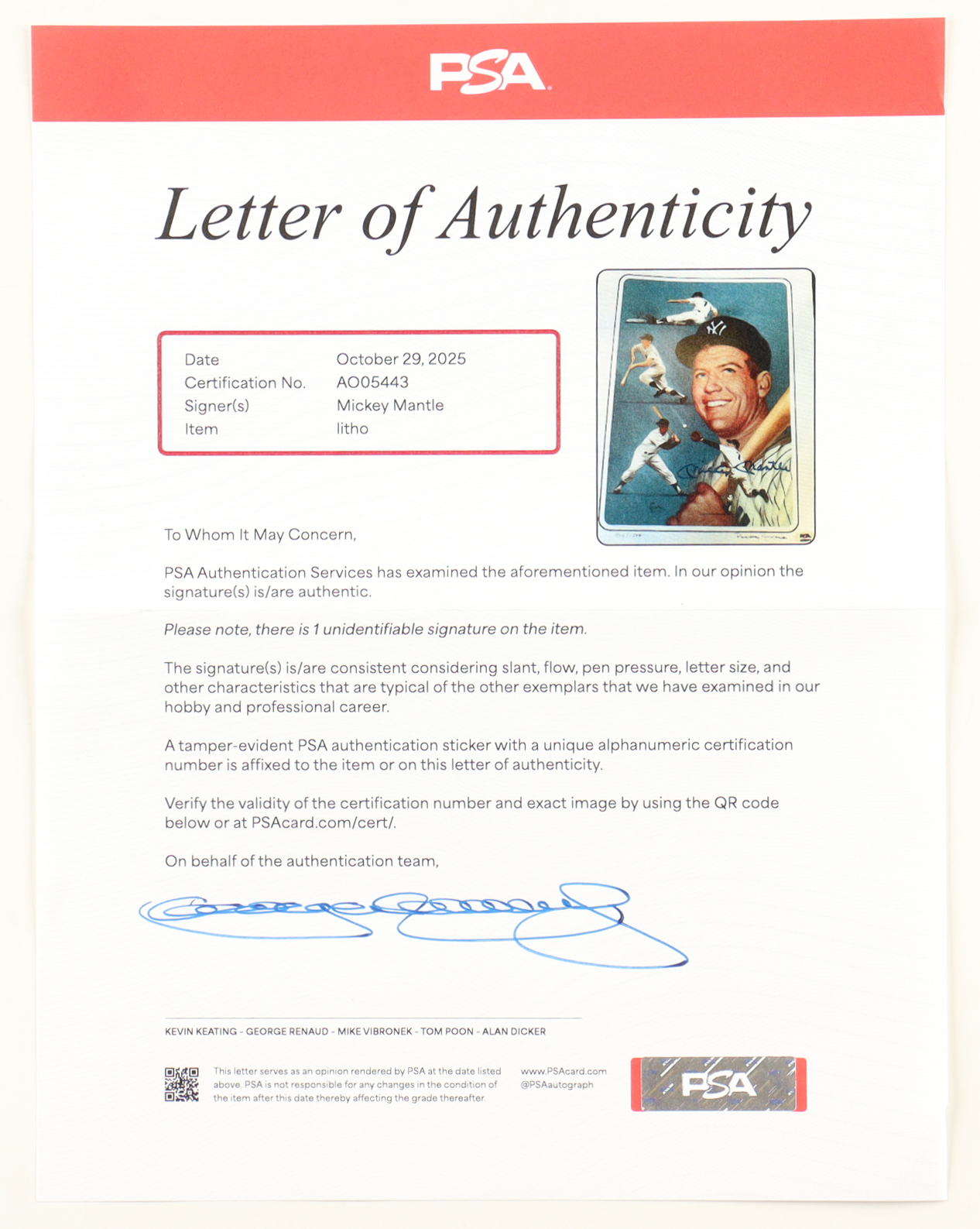 The autograph(s) includes an official PSA/DNA hologram and matching LOA for authenticity purposes.