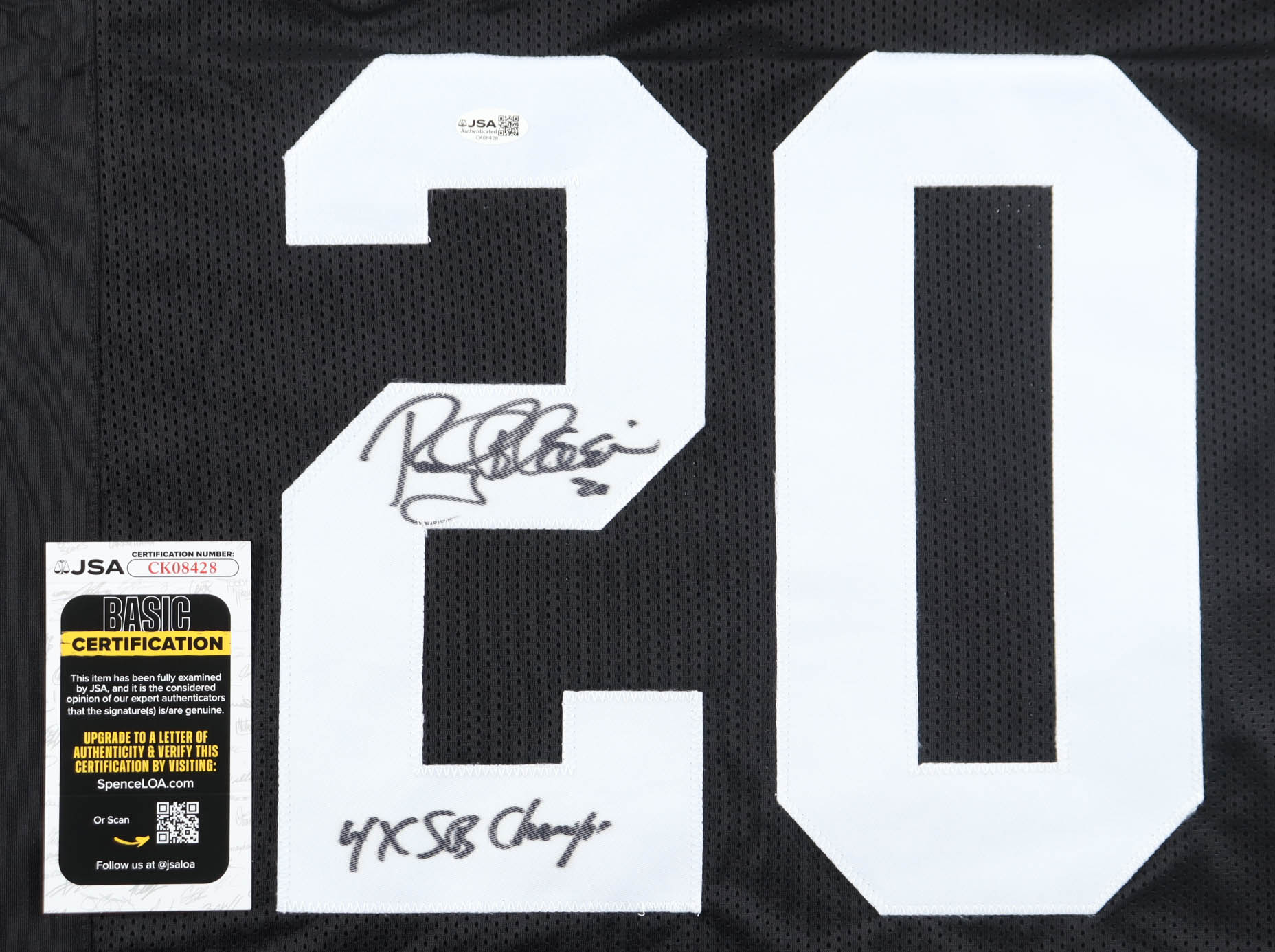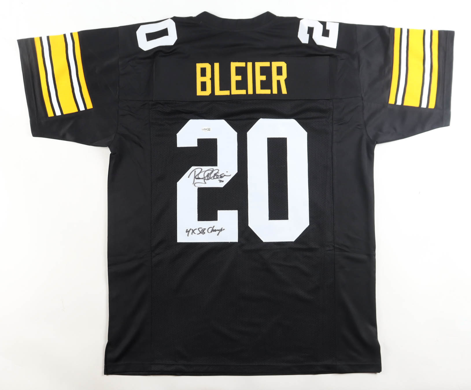 Custom jersey. Everything sewn on, size XL. Hand-signed and inscribed by Rocky Bleier.