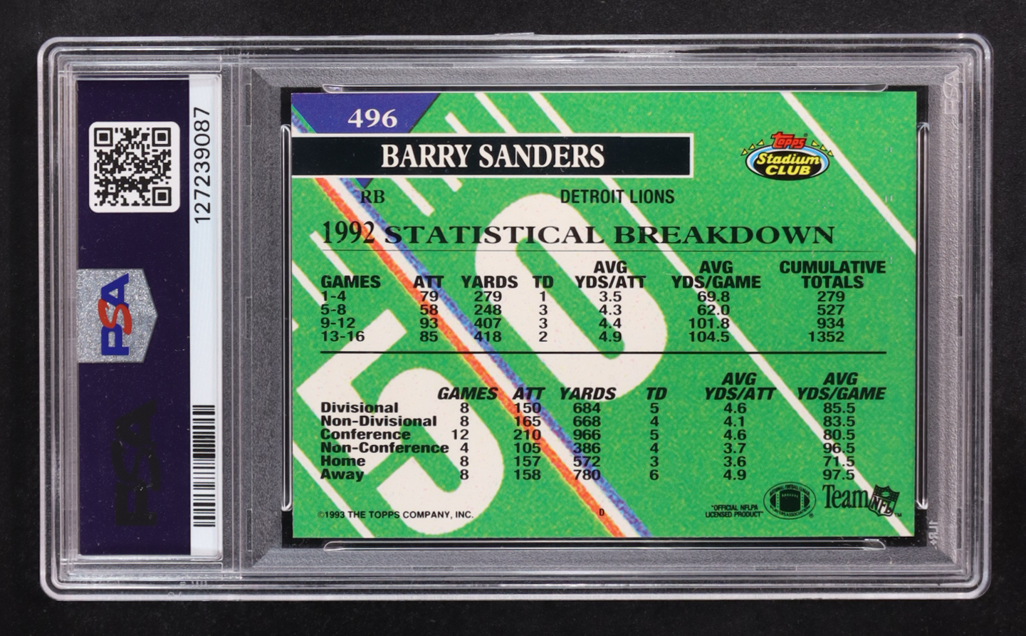 Barry Sanders 1993 Stadium Club #496 MC (PSA 10)