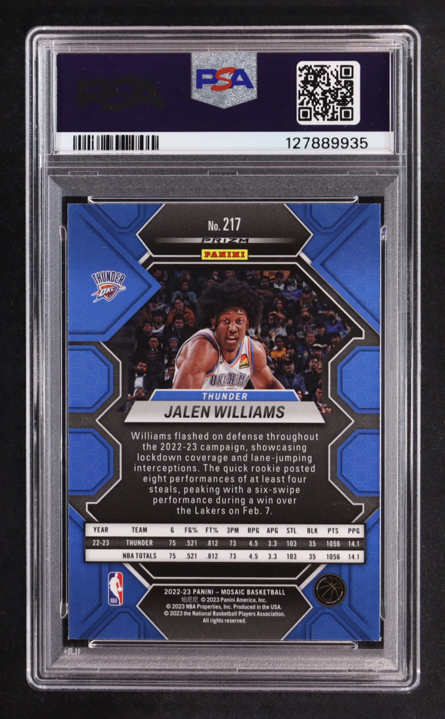 Jalen Williams 2022-23 Panini Mosaic Mosaic Fast Break Silver #217 RC (PSA 10)