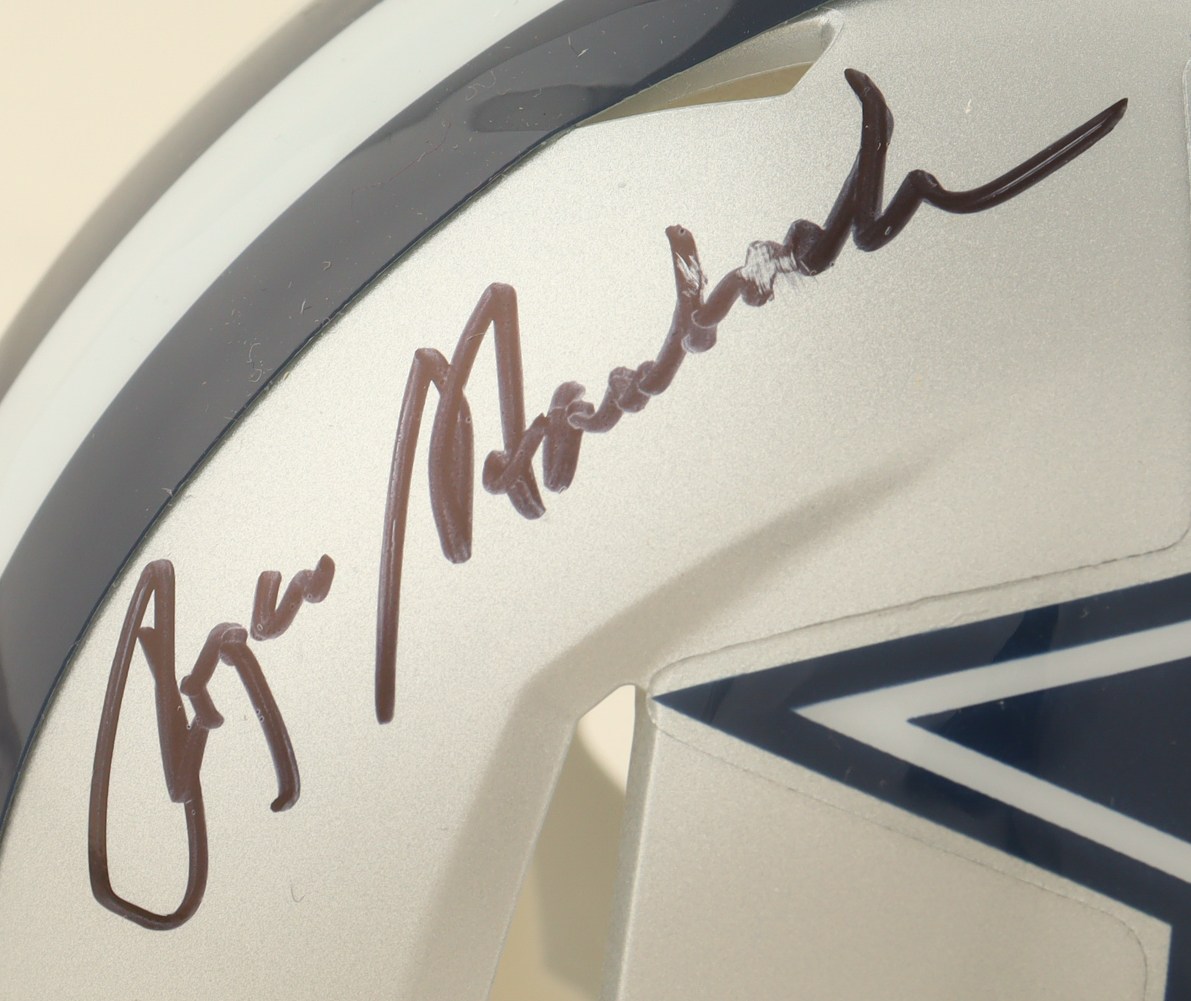 Riddell Dallas Cowboys mini helmet. Hand-signed by Roger Staubach (HOF). Please note the smudged signature.