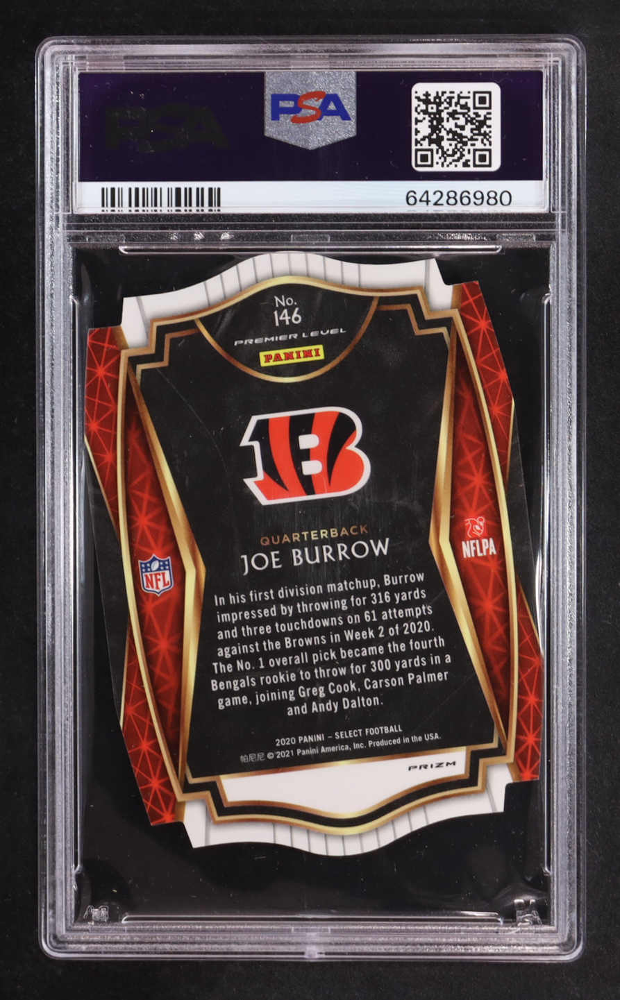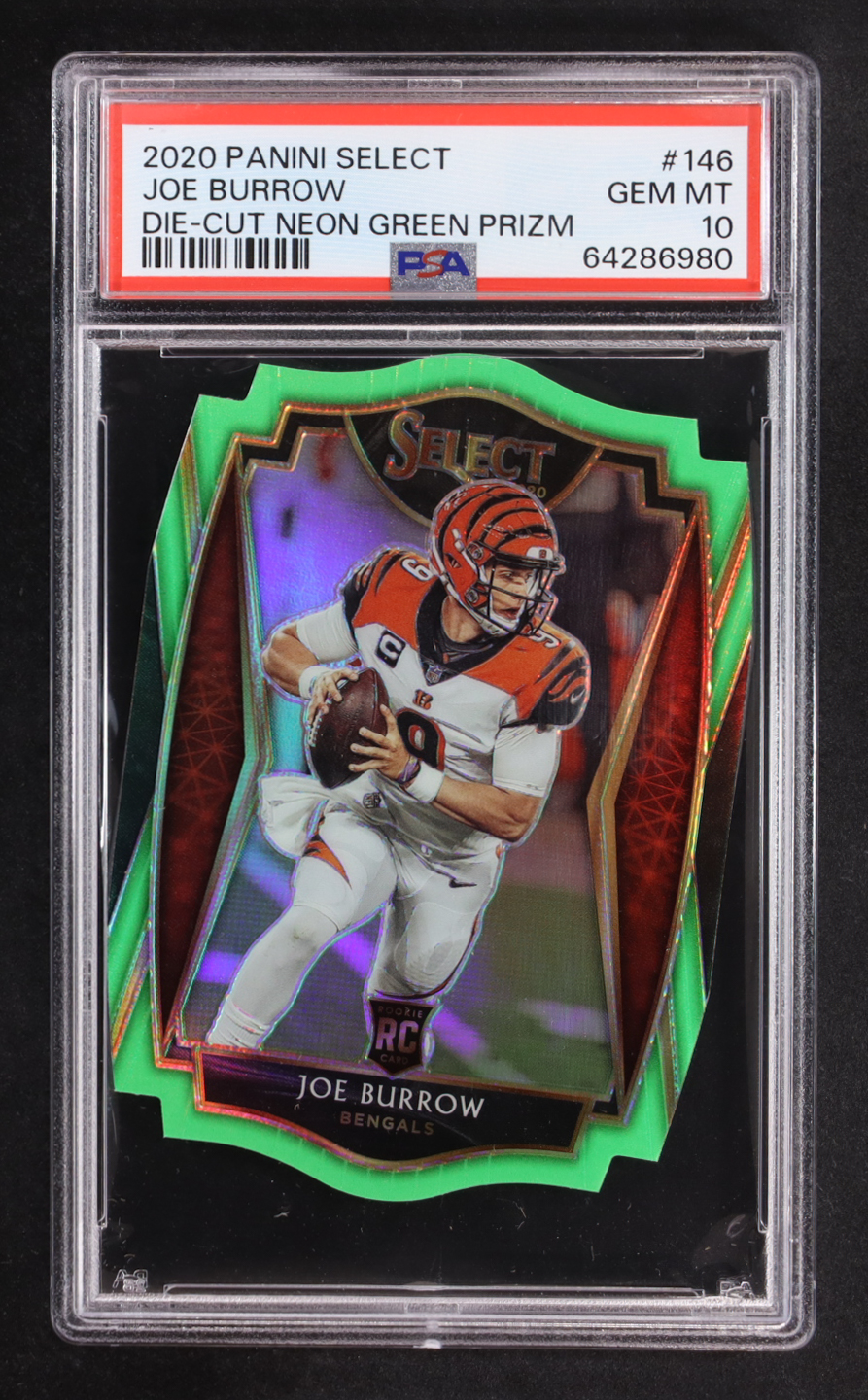 Joe Burrow 2020 Select Prizm Neon Green Die Cut #146 RC (PSA 10)
