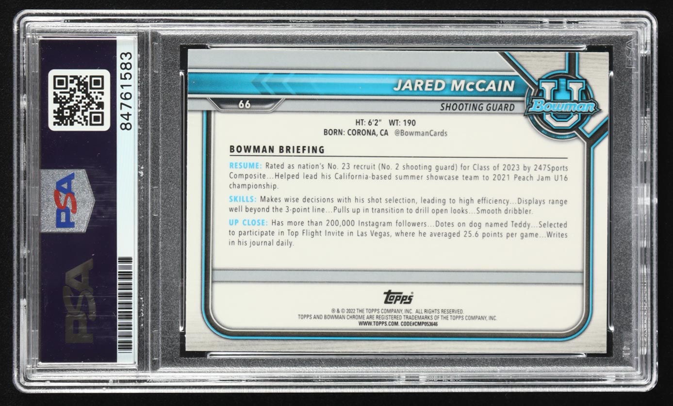 Jared McCain Signed 2021-22 Bowman Chrome University Refractors #66 (PSA Encapsulated)