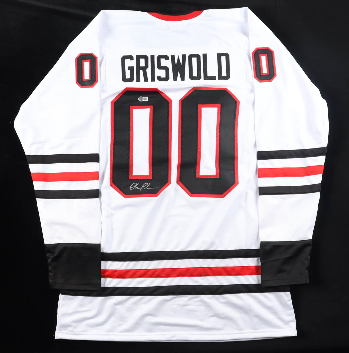 Custom jersey with everything sewn on, size XL. Hand-signed by Chevy Chase (Clark Griswold).