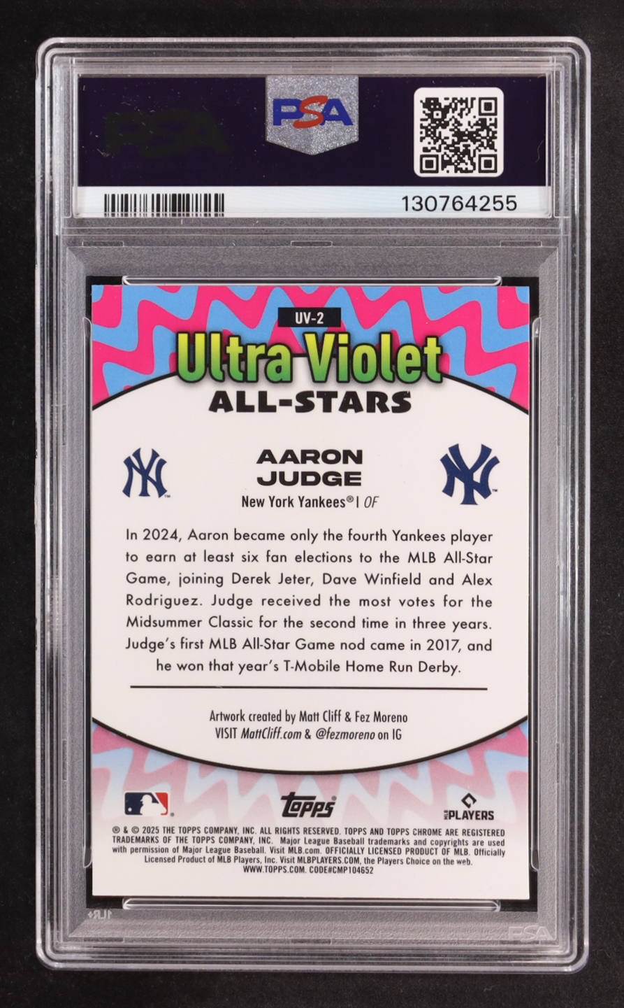 Aaron Judge 2025 Topps Chrome Ultra Violet All-Stars #UV2 (PSA 9)