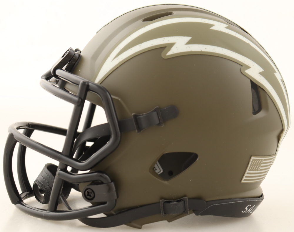 Riddell Los Angeles Chargers Salute to Service alternate speed mini helmet. Hand-signed by LaDainian Tomlinson.