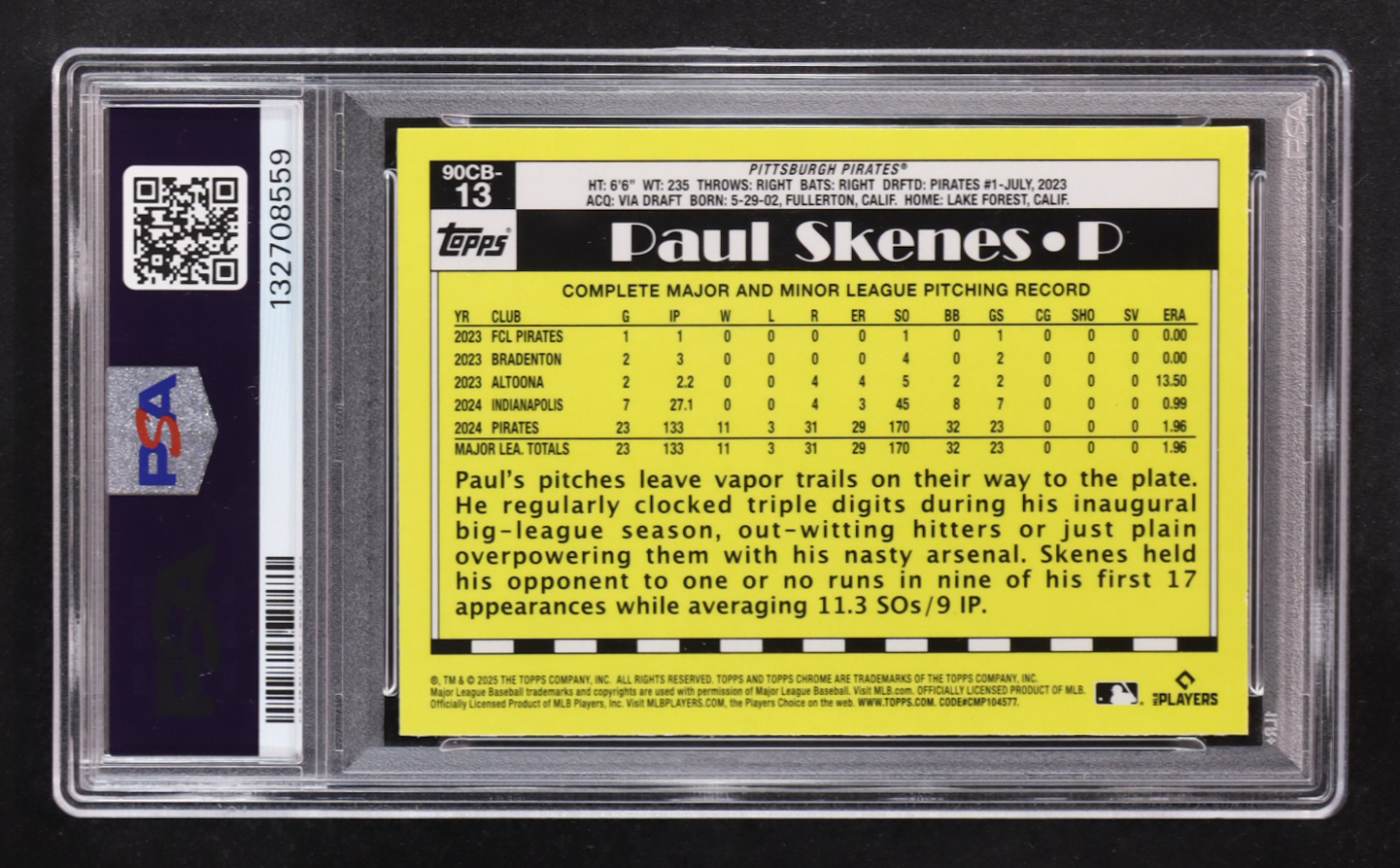 Paul Skenes 2025 Topps Chrome '90 Topps #90CB13 (PSA 10)