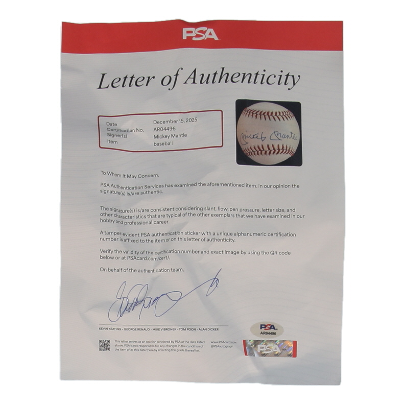 Mickey Mantle Signed OAL Baseball (PSA)