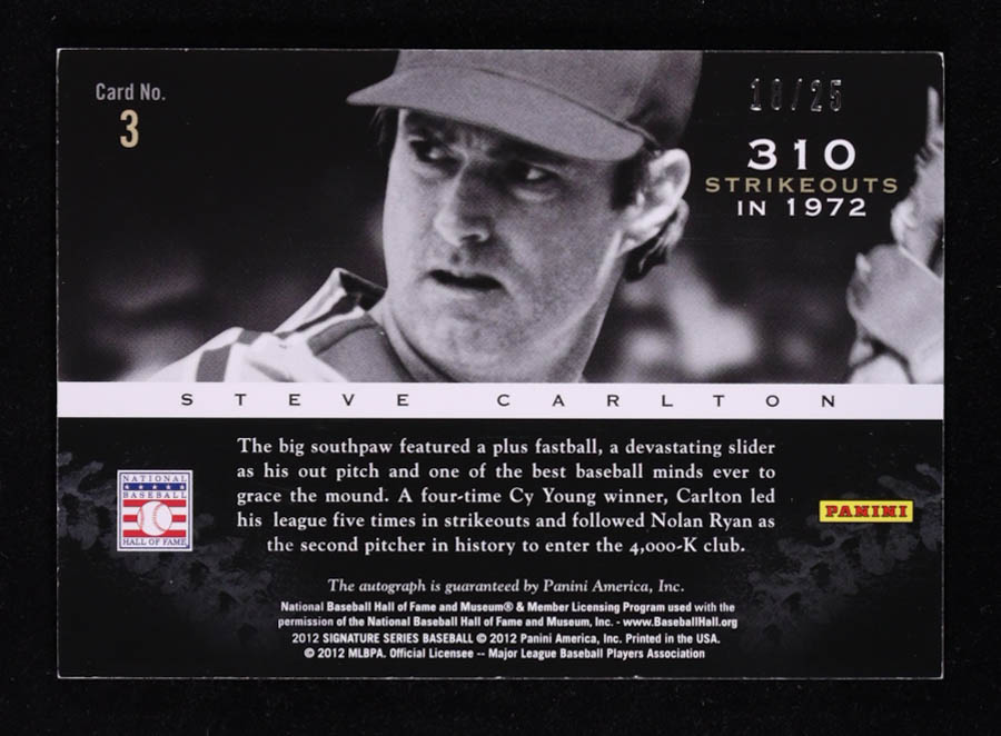 Steve Carlton 2012 Panini Signature Series K-Force Signatures #3 #18/25