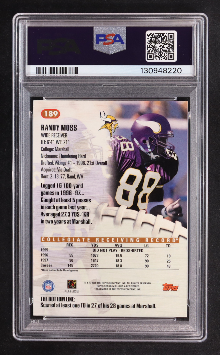 Randy Moss 1998 Stadium Club #189 RC (PSA 10)
