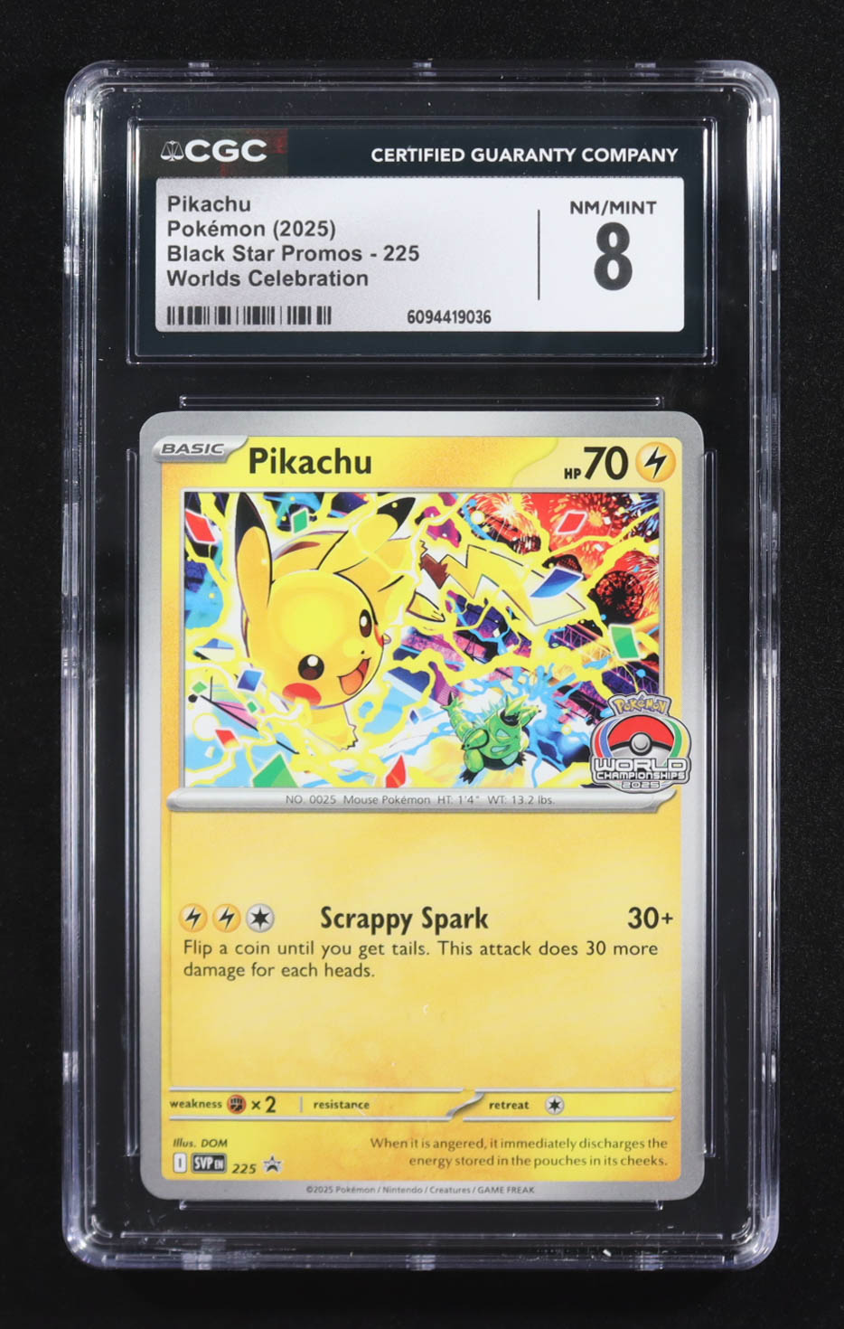 Pikachu 2025 Pokemon Black Star Promos Worlds Celebration #225 (CGC 8)