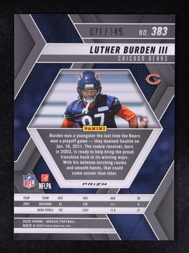 Luther Burden III 2025 Panini Mosaic Silver Knight #383 #071/149 RC