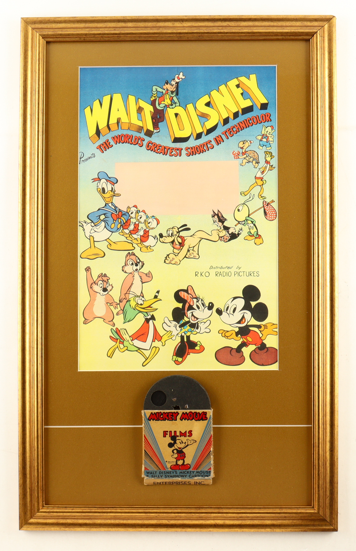 "Walt Disney: The World's Greatest Shorts in Technicolor" Custom Framed Poster Display With 1940 Mickey Mouse 8mm Film With Original box