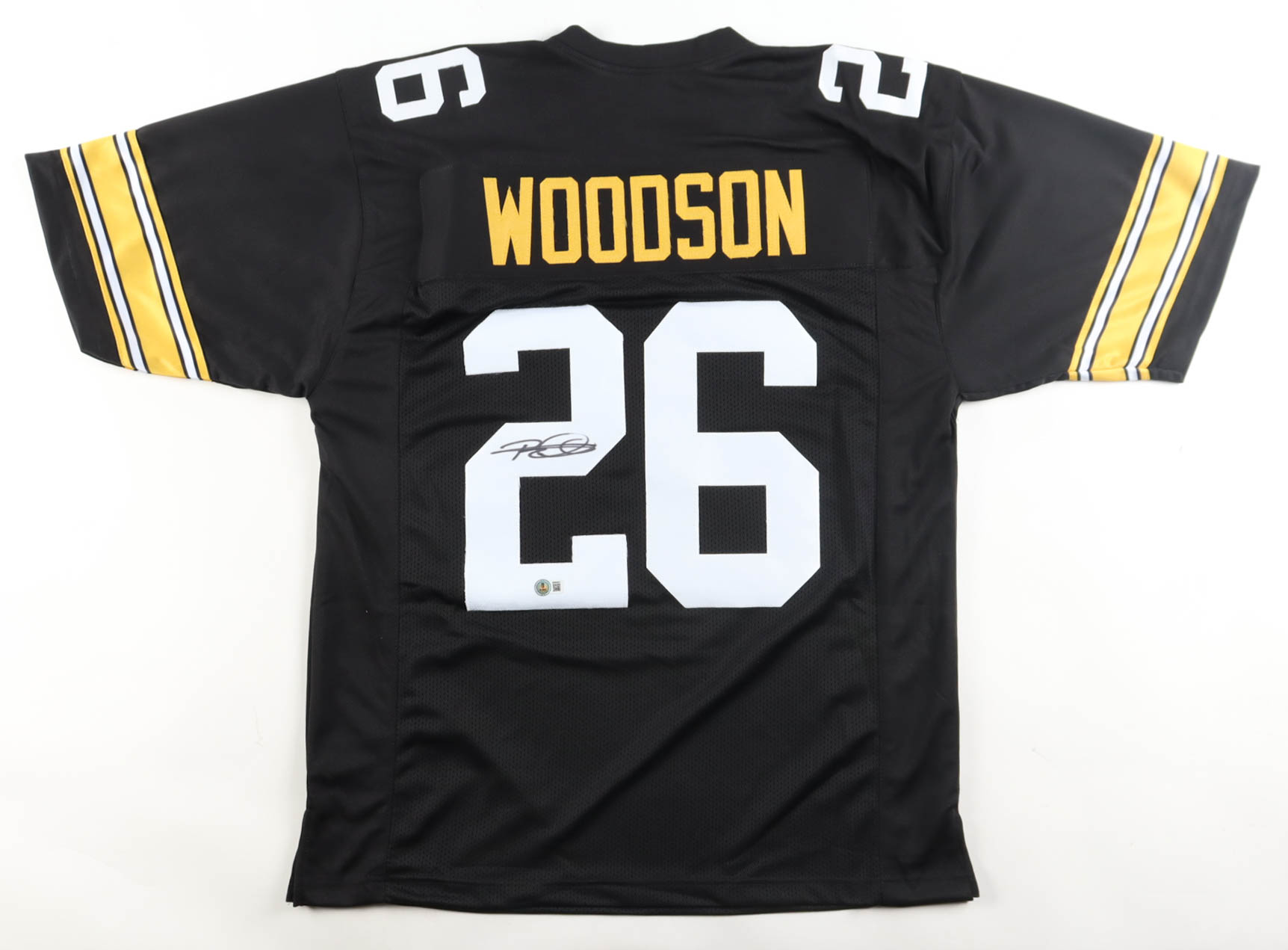 Custom jersey with everything sewn on, size XL. Hand-signed by Rod Woodson (HOF).