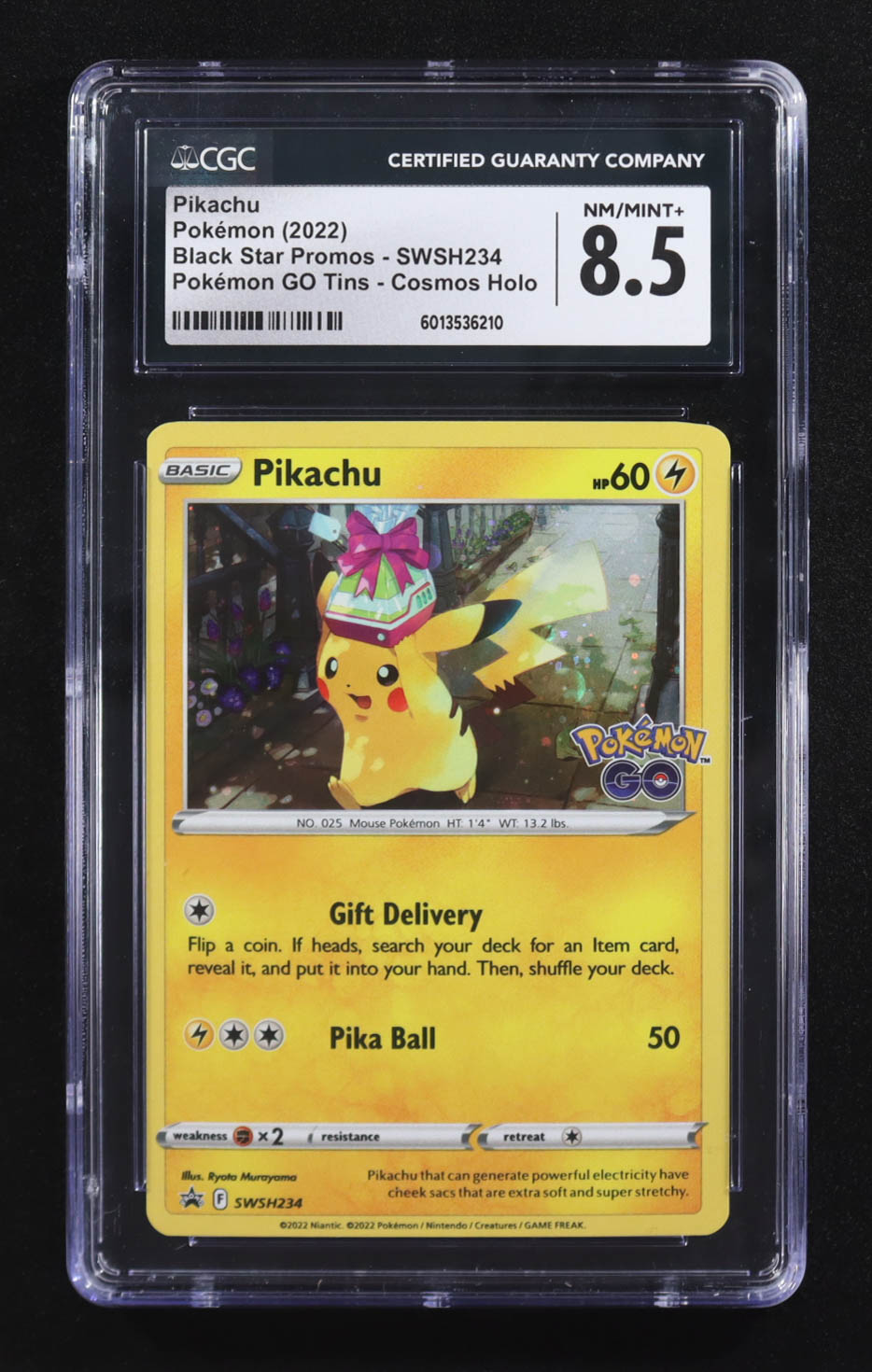 Pikachu 2022 Pokemon Sword & Shield Black Star Promos Pokemon Go Tins Cosmos Holo #SWSH234 (CGC 8.5)