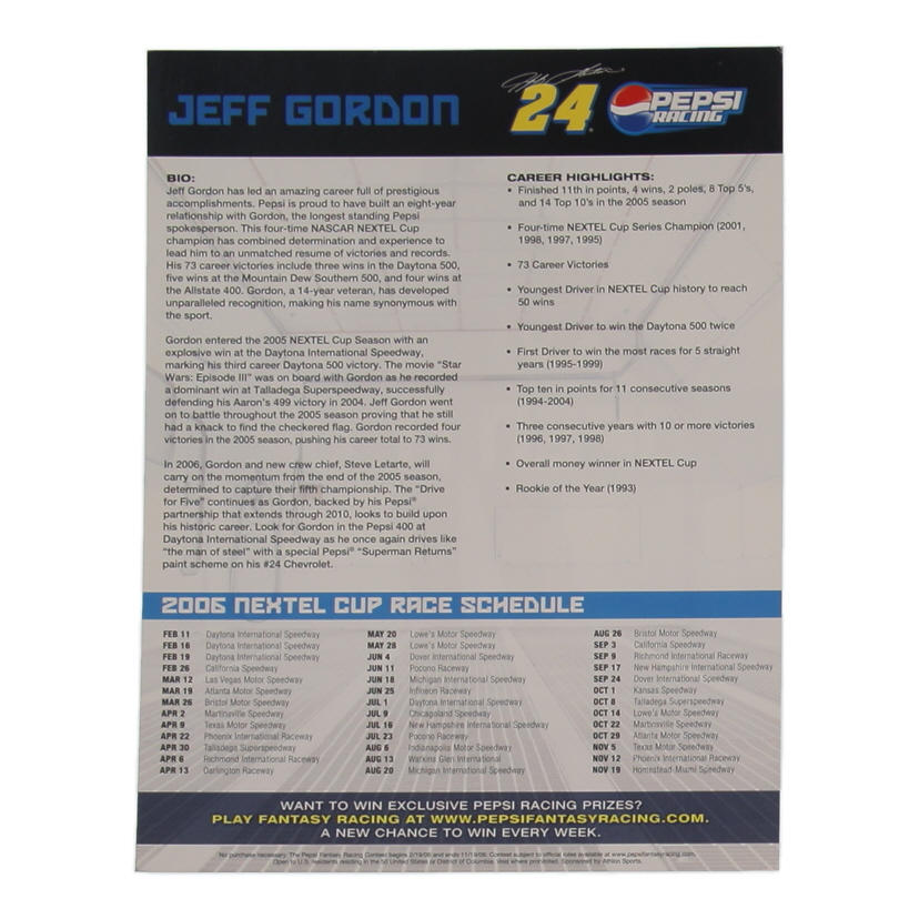 Photo measures 8" x 10" in size and has been hand-signed by Jeff Gordon (HOF).