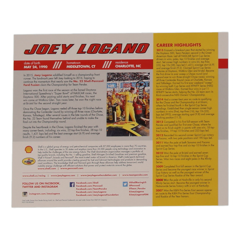 Photo measures 8" x 10" in size and has been hand-signed by Joey Logano.