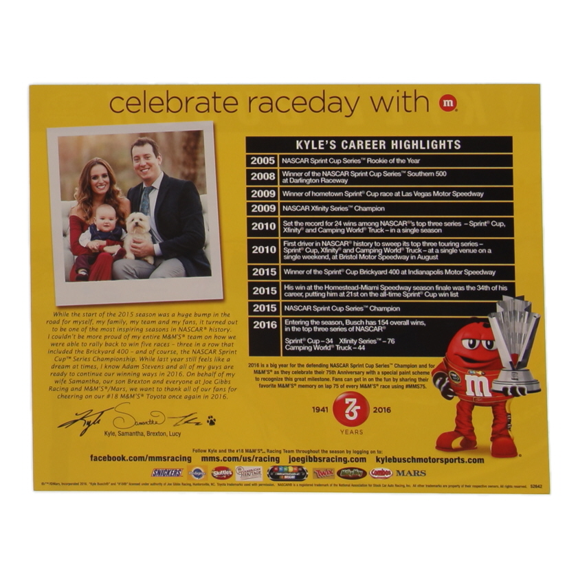 Photo measures 8" x 10" in size and has been hand-signed by Kyle Busch.