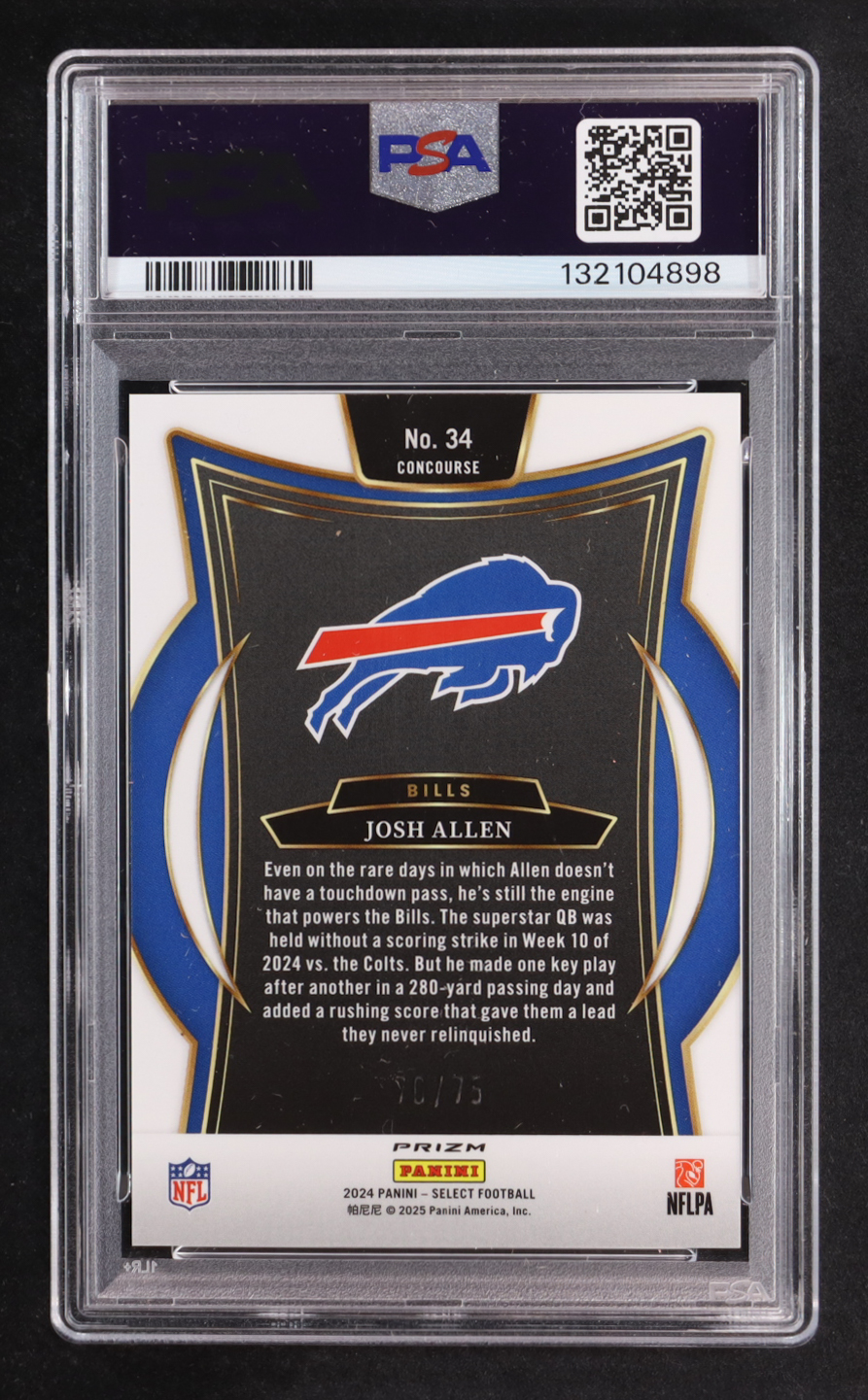 Josh Allen 2024 Select Prizm Purple #34 #70/75 (PSA 10)