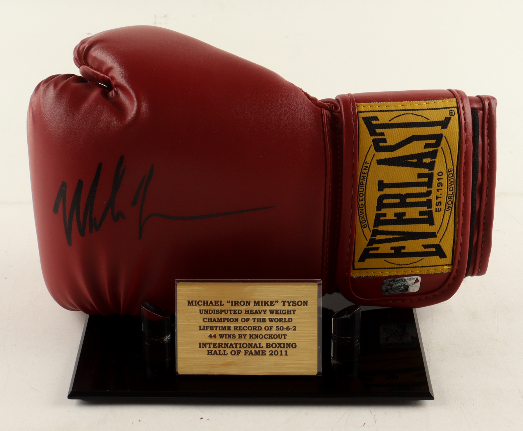 Everlast boxing glove, hand-signed by Mike Tyson (HOF). The display stand is included in the listing as shown above. Please see photos for details regarding the condition of the item.