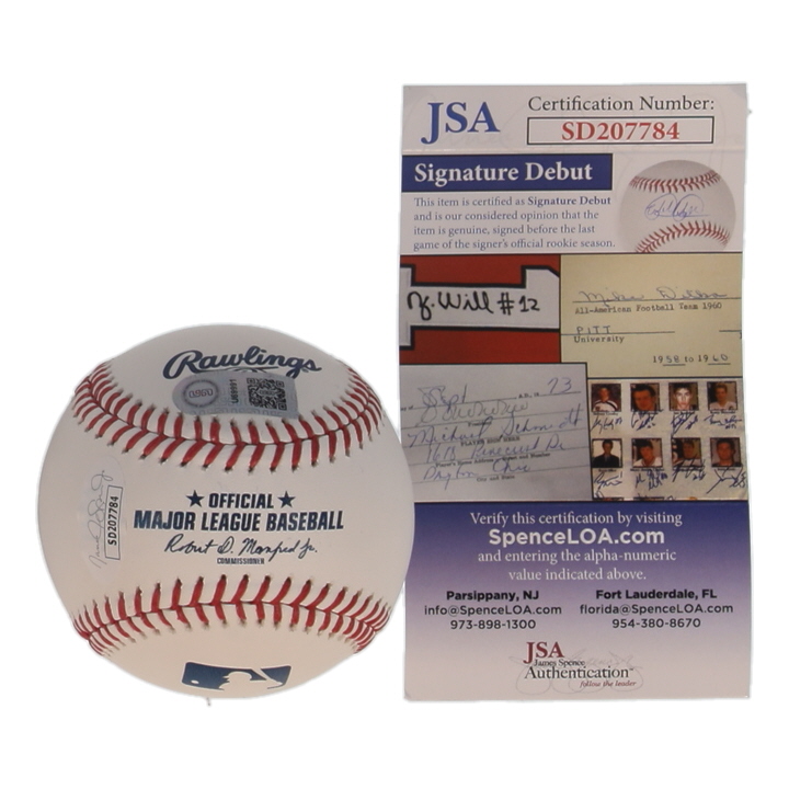 The lot / autograph(s) includes an official USA Sports Marketing (USA SM) hologram, as well as an official James Spence Authentication (JSA) "Signature Debut" hologram and COA. "Signature Debut" is the autographed memorabilia equivalent to a rookie card. The JSA definition of a "Signature Debut" is as follows: "Any item that is autographed and received by JSA prior to the last game of the signer's official rookie season.