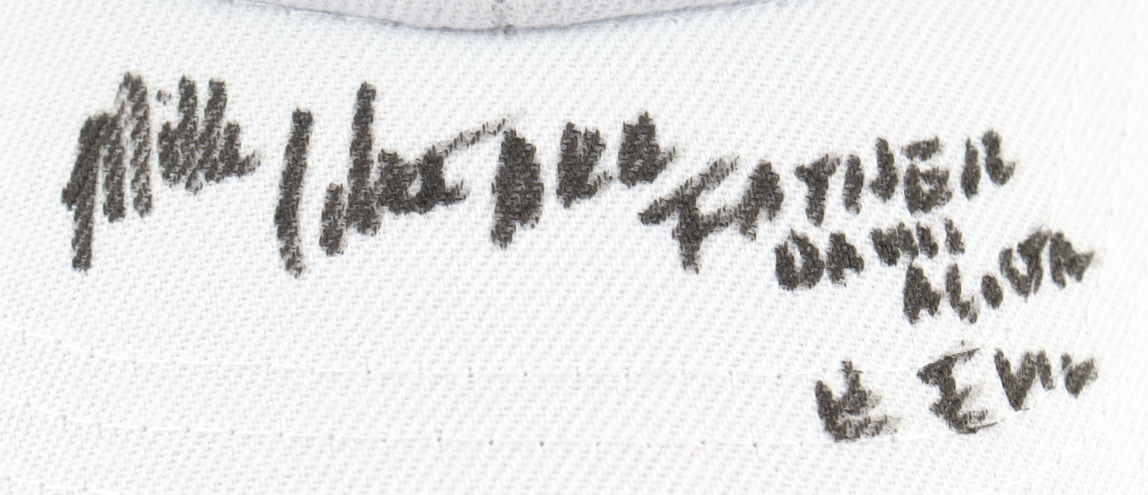 Adjustable hat has been hand-signed and inscribed by Mike Coulter.