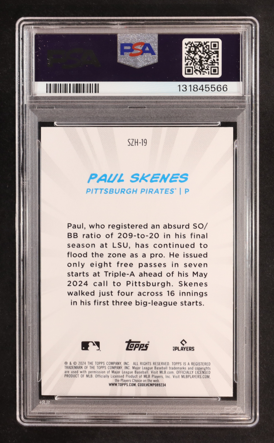 Paul Skenes 2024 Topps Japan Strike Zone Heroes #SZH19 RC (PSA 10)