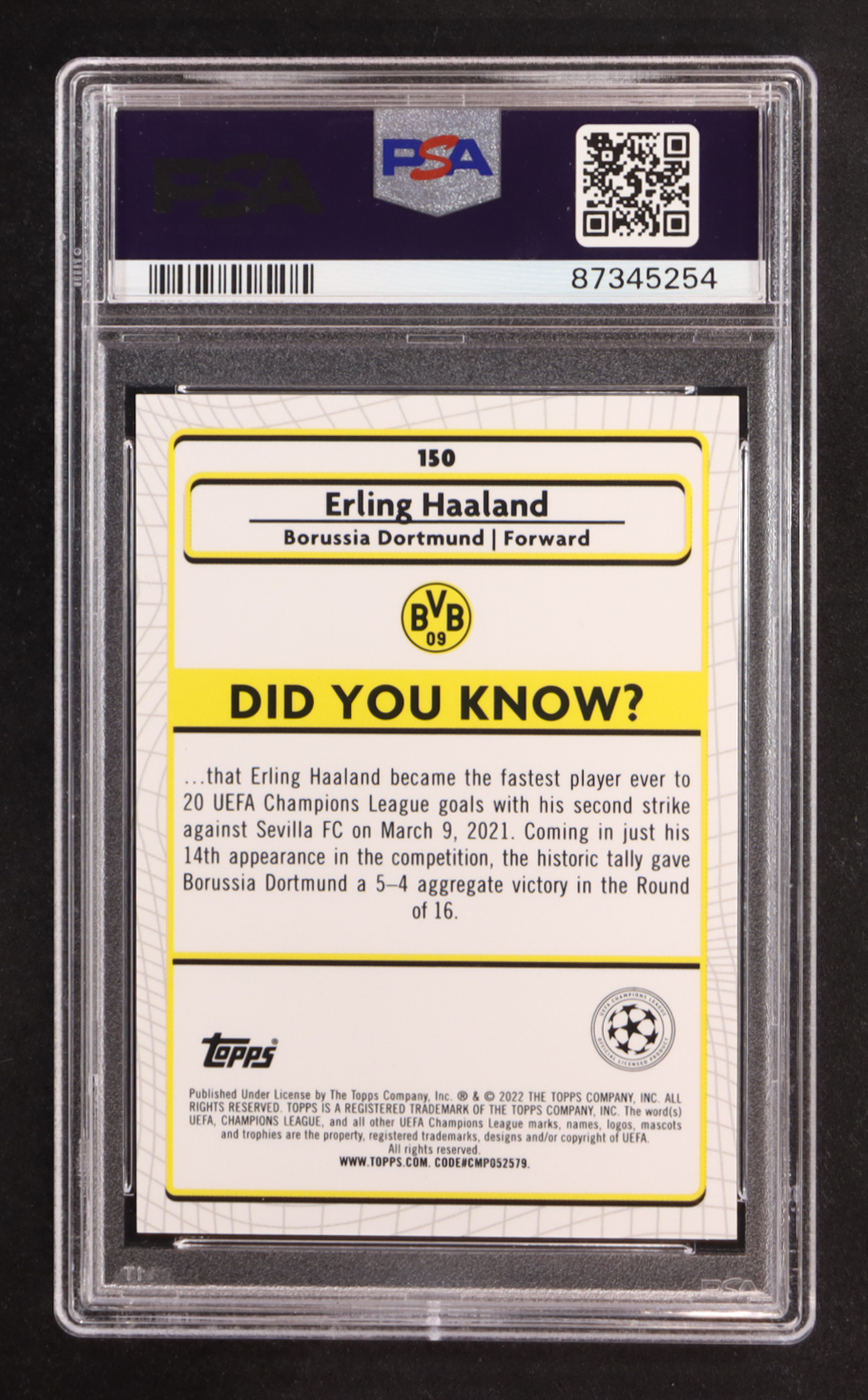 Erling Haaland 2021-22 Merlin UEFA Champions League Aqua Prism Refractors #150 (PSA 10)
