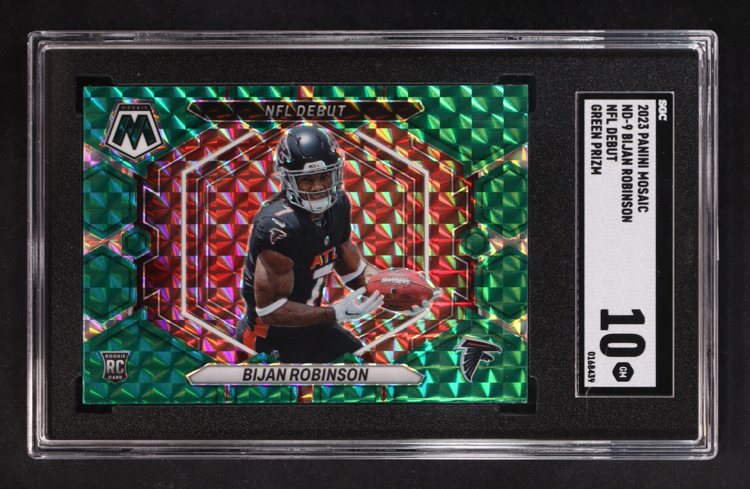 Bijan Robinson 2023 Panini Mosaic NFL Debut Green Prizm #ND-9 RC (SGC 10)