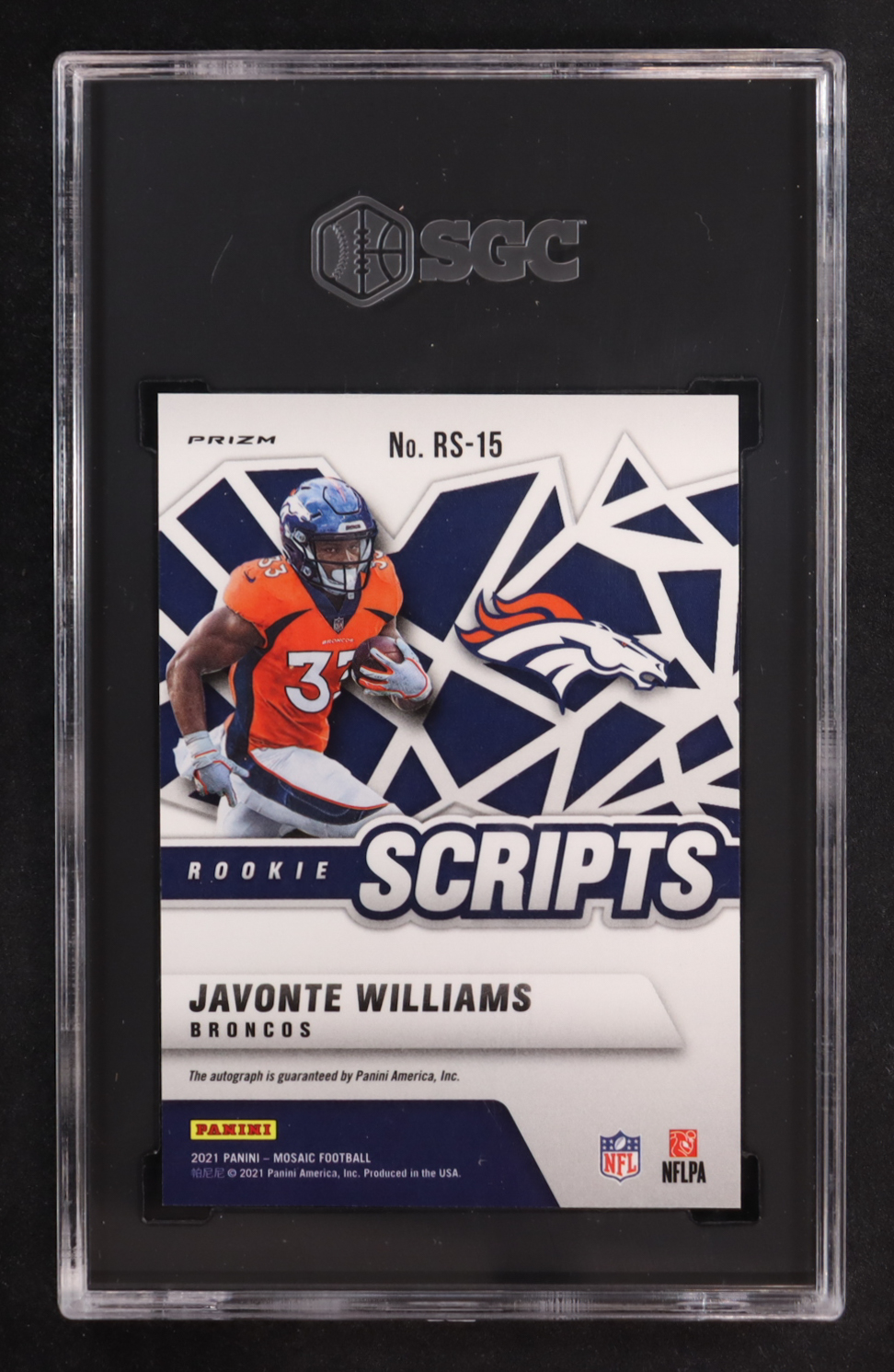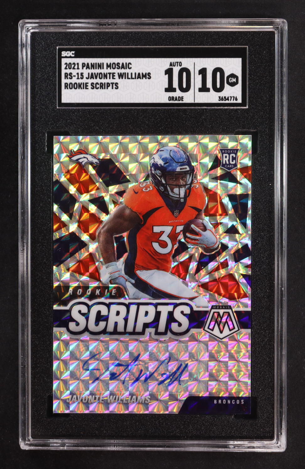 Javonte Williams 2021 Panini Mosaic Rookie Scripts #RS-15 RC (SGC 10 | Autograph Graded SGC 10)