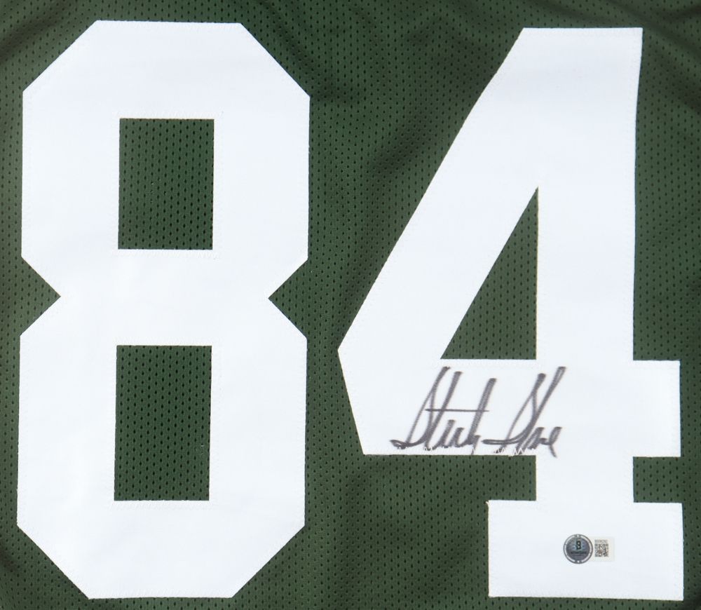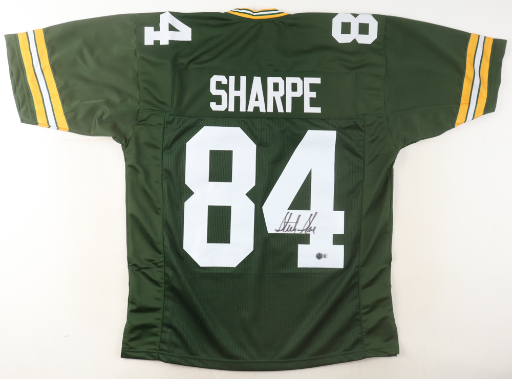 Custom jersey with everything sewn on, size XL. Hand-signed by Sterling Sharpe.