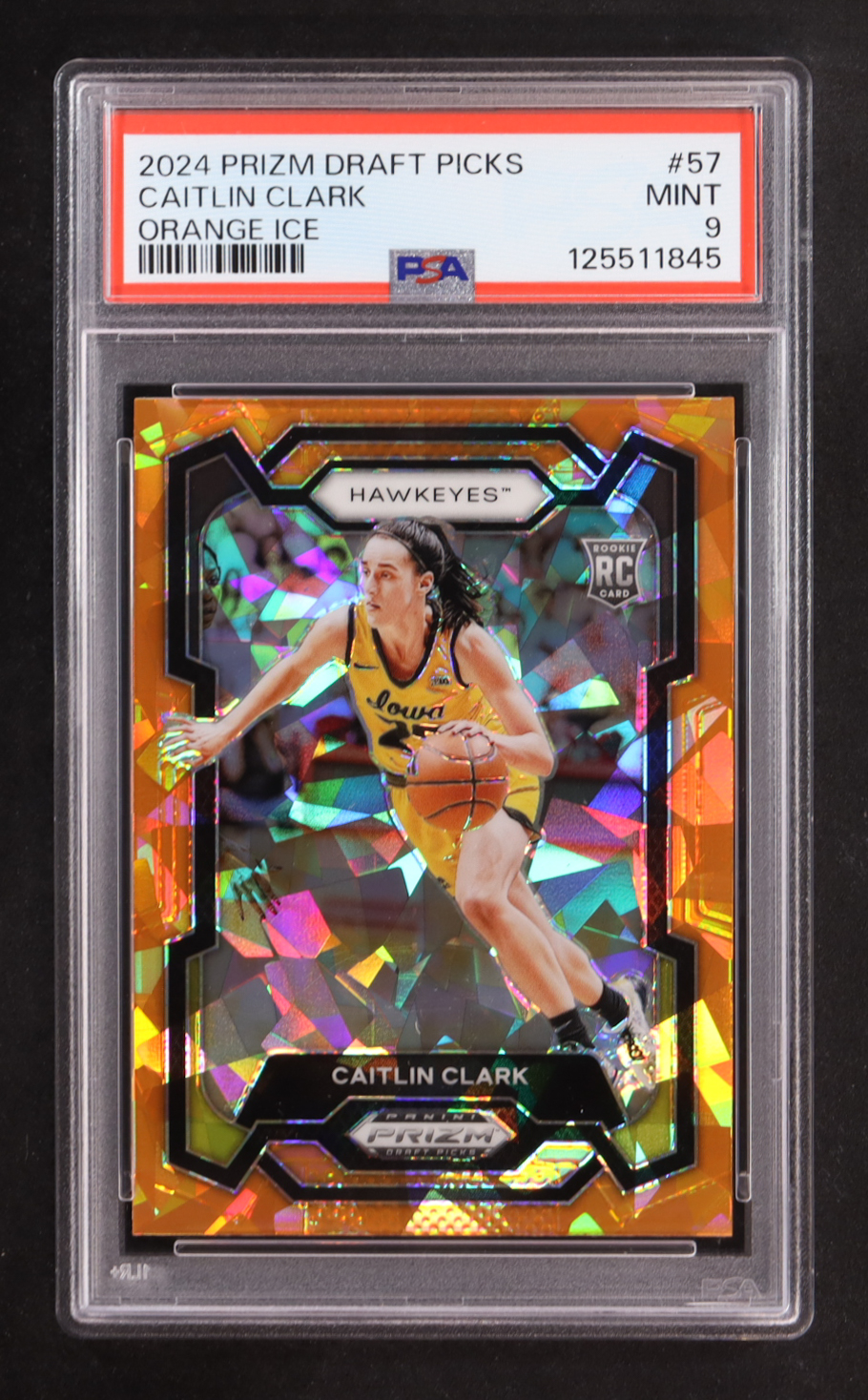 Caitlin Clark 2024-25 Panini Prizm Draft Picks Prizms Orange Ice #57 RC (PSA 9)