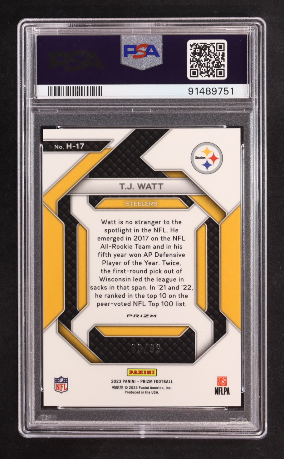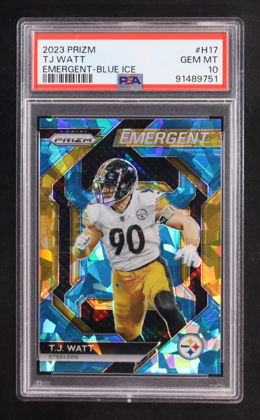 T.J. Watt 2023 Panini Prizm Emergent Prizms Blue Ice #17 (PSA 10)