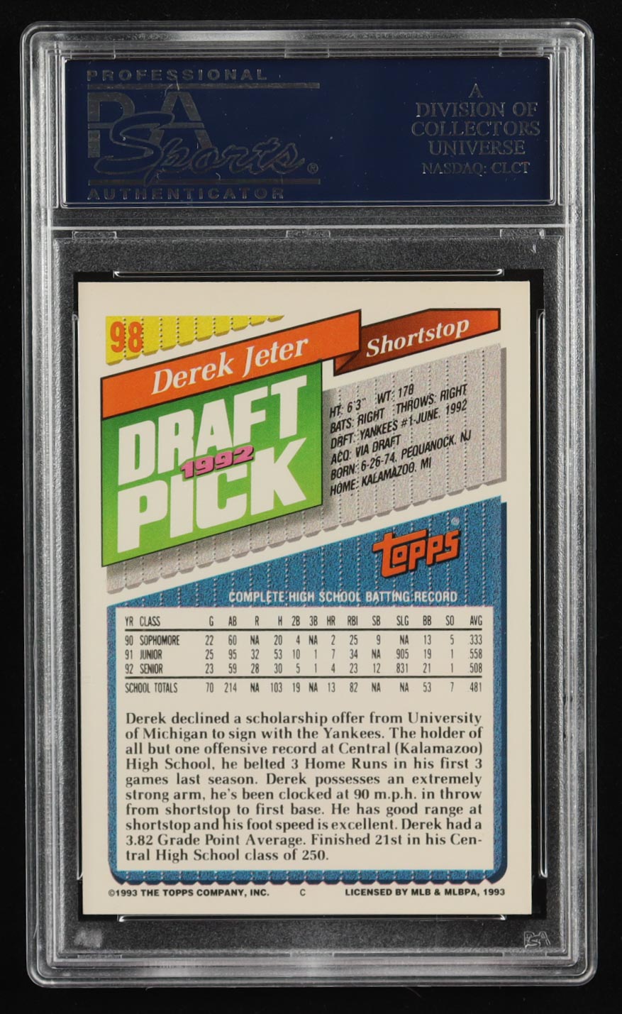 Derek Jeter 1993 Topps #98 RC (PSA 7)
