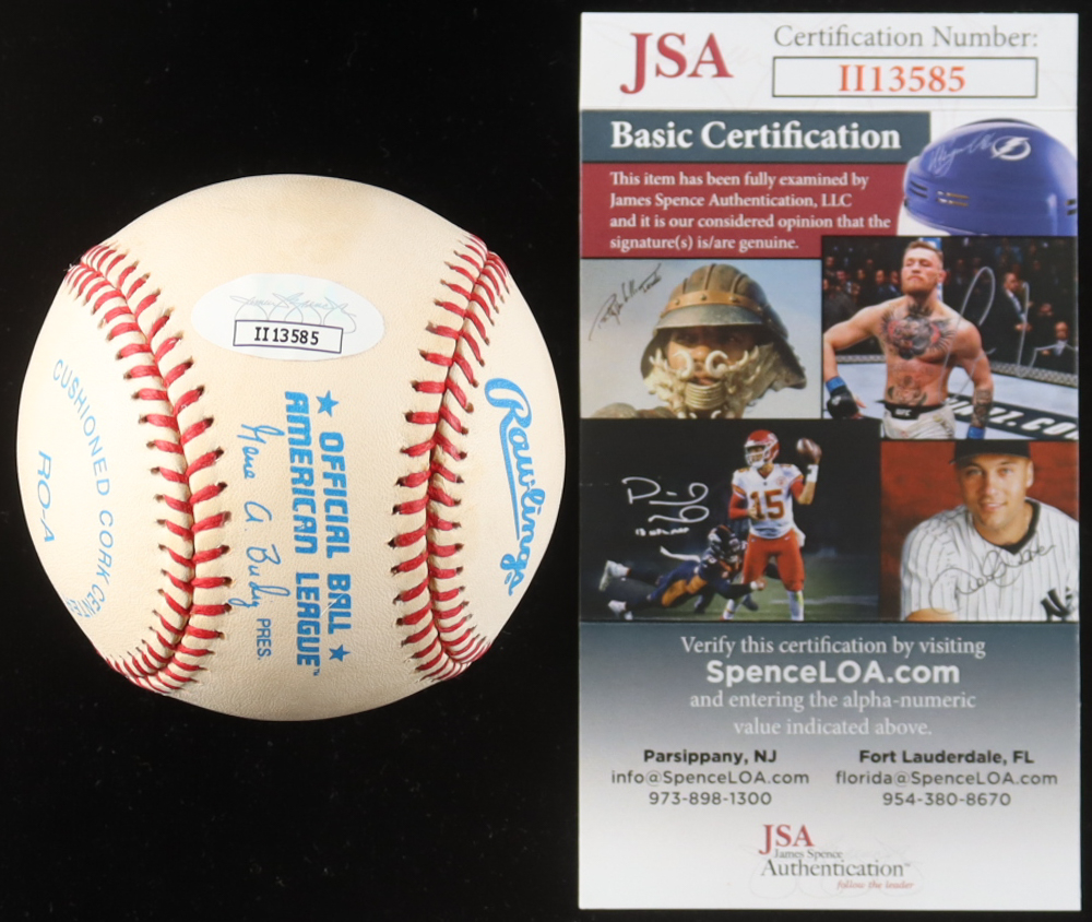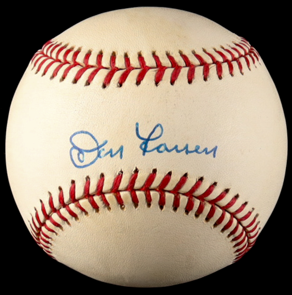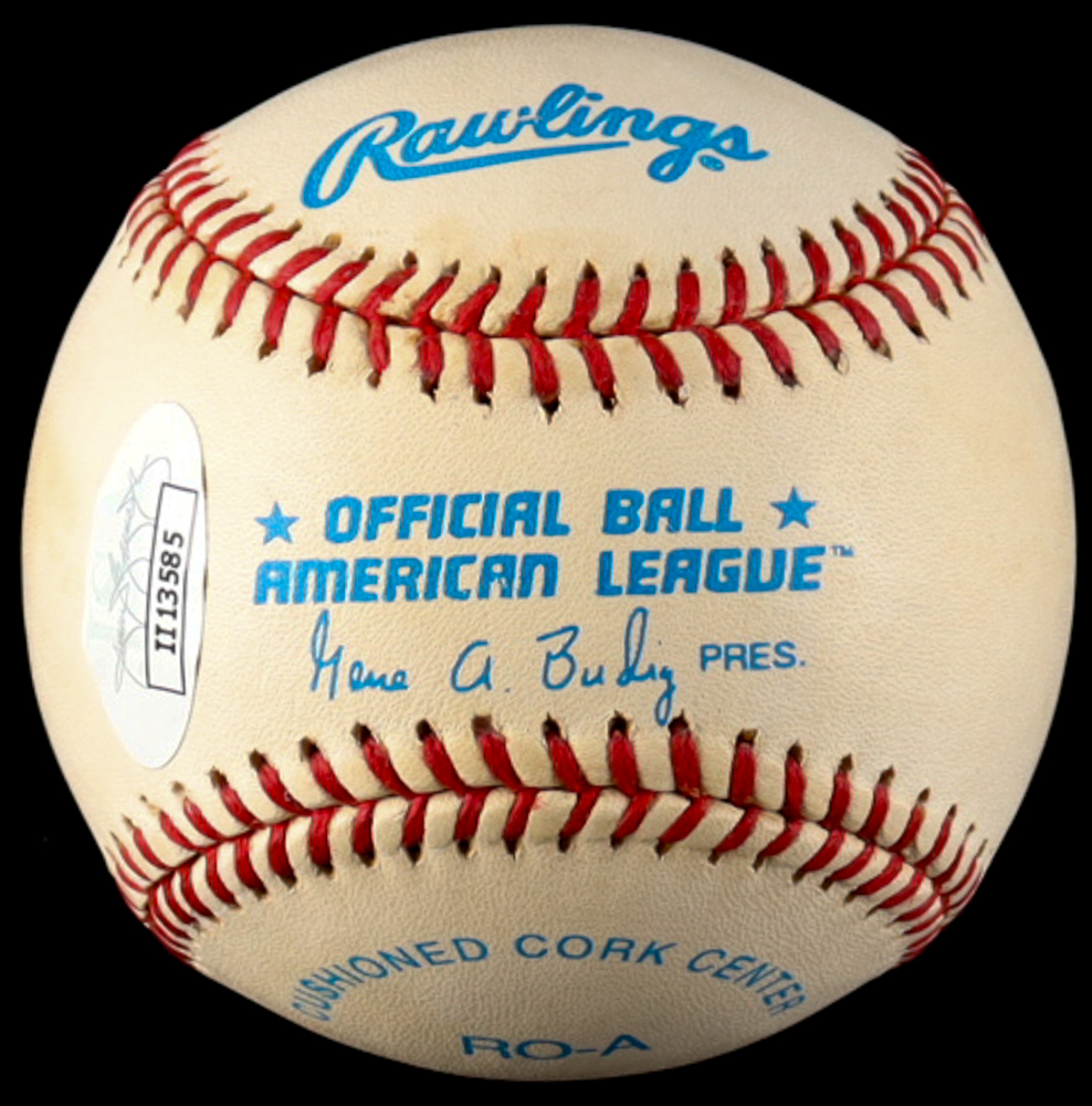 Rawlings Official American League baseball. Hand signed by Don Larsen (D. 2020, New York Yankees). Please note, the ball is naturally toned and stained throughout.