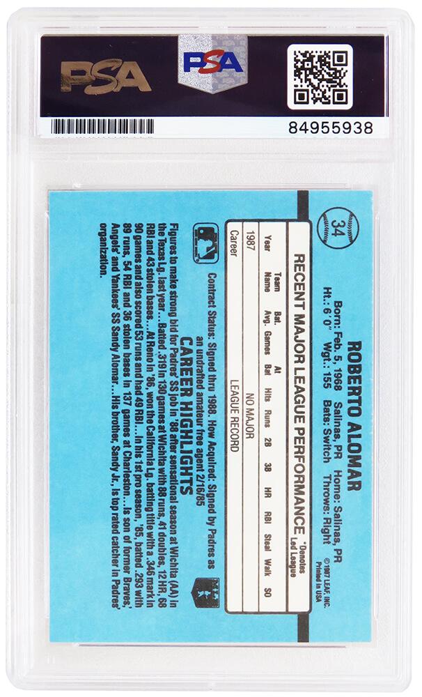 Roberto Alomar Signed 1988 Donruss #34 (PSA | Auto 10)