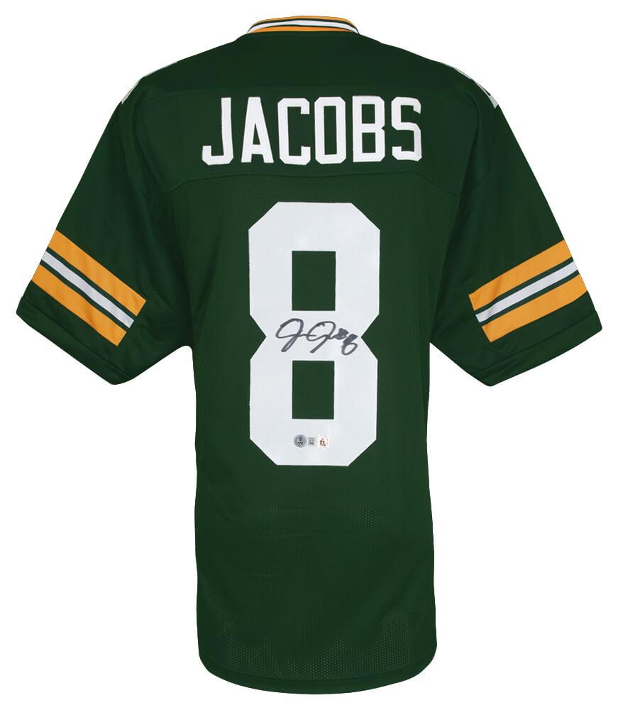 Custom jersey with everything sewn on, size XL. Hand-signed by Josh Jacobs (Green Bay Packers).