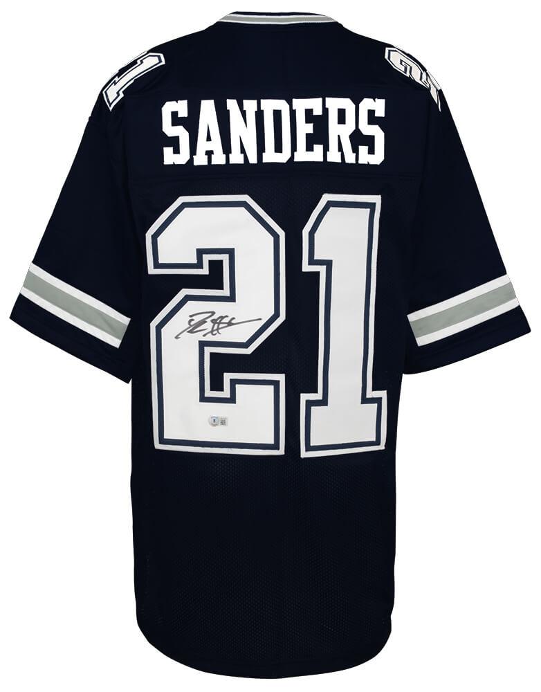 Custom jersey with everything sewn on, size XL. Hand-signed by Deion Sanders (HOF).